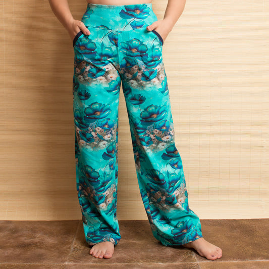 Türkiz Virágos - Lenge szabású pamut jersey nadrág